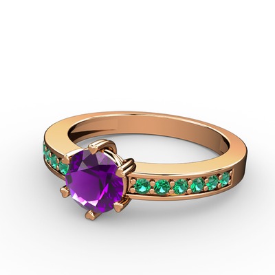 Ametist ve yeşil kuvars 18 ayar rose altın yüzük