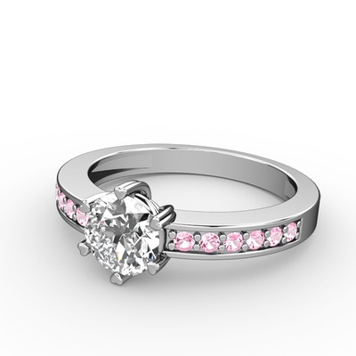 Beyaz zirkon ve pembe kuvars 18 ayar beyaz altın yüzük