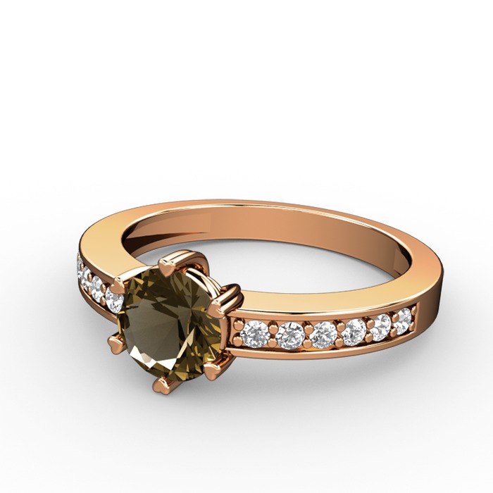 Dumanlı kuvars ve beyaz zirkon 18 ayar rose altın yüzük