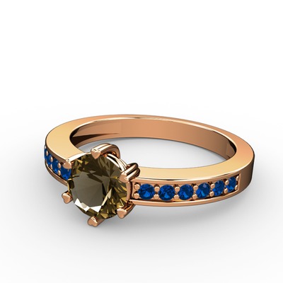 Dumanlı kuvars ve lab safir 14 ayar rose altın yüzük