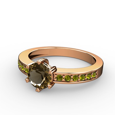 Dumanlı kuvars ve peridot 14 ayar rose altın yüzük