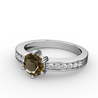 Dumanlı kuvars ve pırlanta 14 ayar beyaz altın yüzük (0.18 karat)