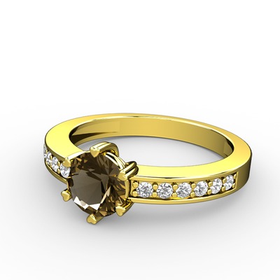 Dumanlı kuvars ve pırlanta 18 ayar altın yüzük (0.18 karat)