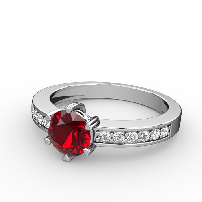 Garnet ve pırlanta 8 ayar beyaz altın yüzük (0.18 karat)
