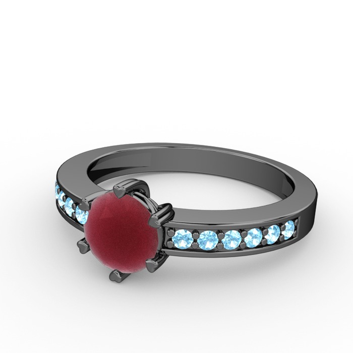Kök yakut ve akuamarin 925 ayar siyah rodyum kaplama gümüş yüzük