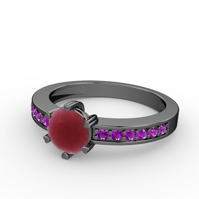 Kök yakut ve ametist 925 ayar siyah rodyum kaplama gümüş yüzük