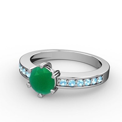 Kök zümrüt ve akuamarin 18 ayar beyaz altın yüzük