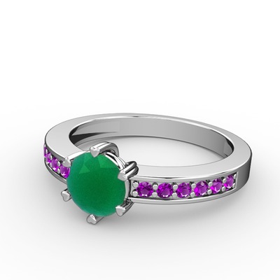 Kök zümrüt ve ametist 8 ayar beyaz altın yüzük