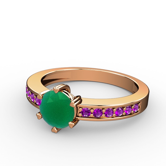 Kök zümrüt ve ametist 925 ayar rose altın kaplama gümüş yüzük