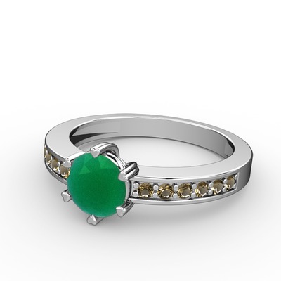 Kök zümrüt ve dumanlı kuvars 18 ayar beyaz altın yüzük