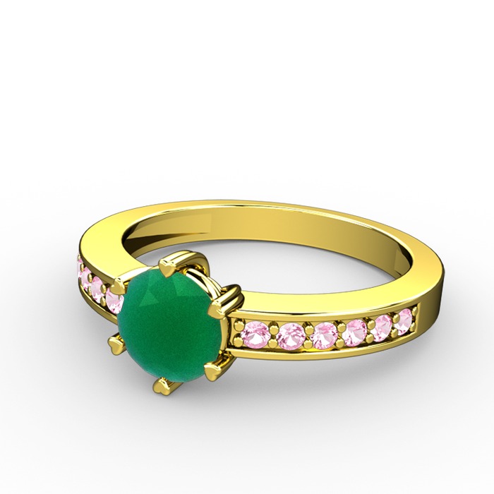 Kök zümrüt ve pembe kuvars 925 ayar altın kaplama gümüş yüzük