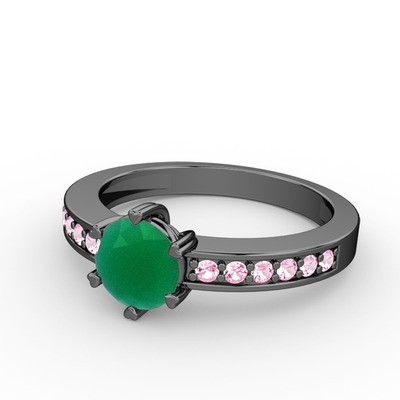 Kök zümrüt ve pembe kuvars 925 ayar siyah rodyum kaplama gümüş yüzük