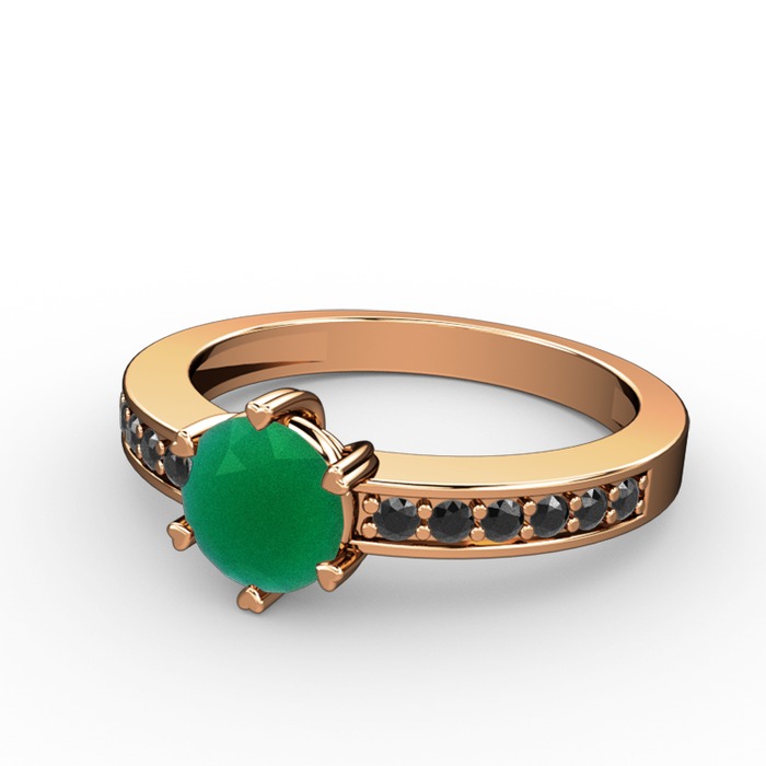 Kök zümrüt ve siyah zirkon 14 ayar rose altın yüzük