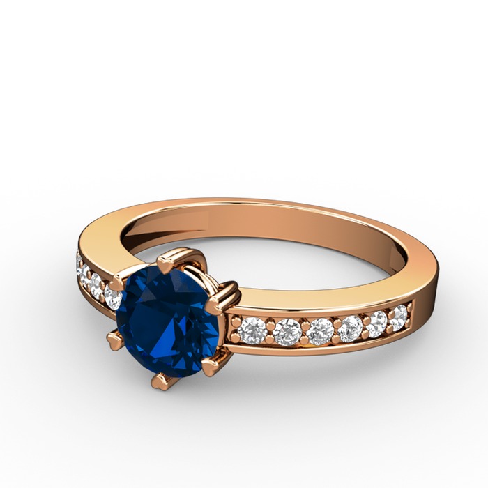 Lab safir ve beyaz zirkon 8 ayar rose altın yüzük