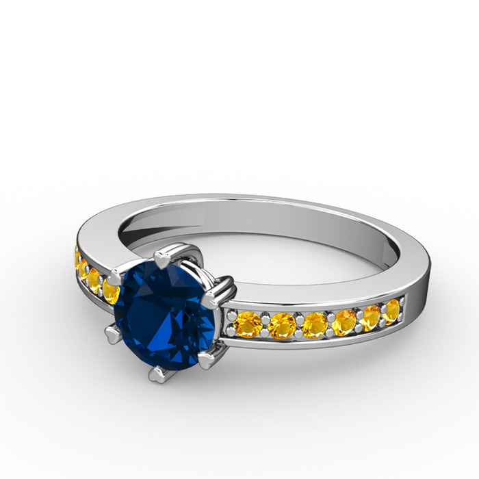 Lab safir ve sitrin 14 ayar beyaz altın yüzük