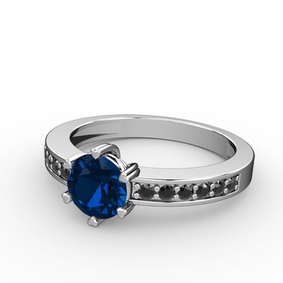 Lab safir ve siyah zirkon 925 ayar gümüş yüzük