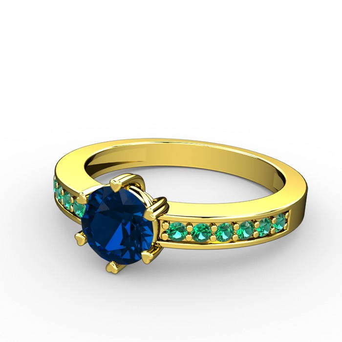 Lab safir ve yeşil kuvars 8 ayar altın yüzük