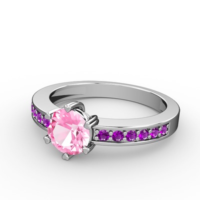 Pembe kuvars ve ametist 18 ayar beyaz altın yüzük