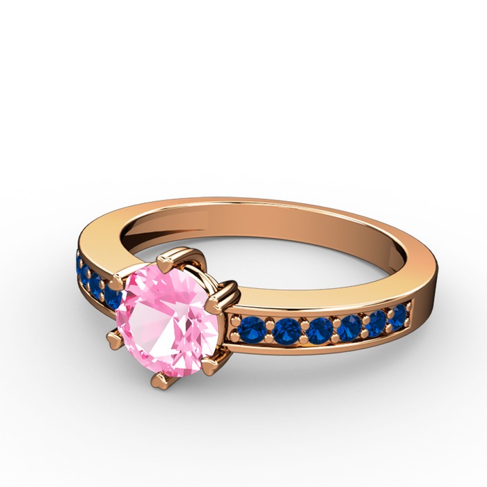 Pembe kuvars ve lab safir 14 ayar rose altın yüzük