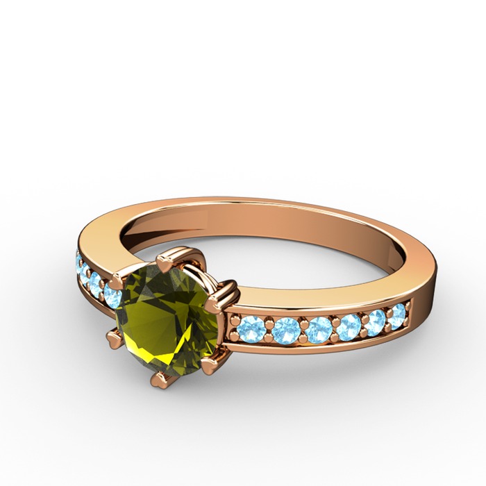 Peridot ve akuamarin 925 ayar rose altın kaplama gümüş yüzük
