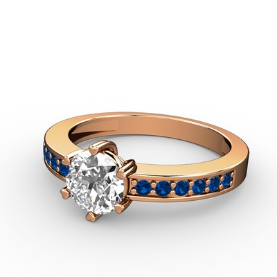 Pırlanta ve lab safir 14 ayar rose altın yüzük (0.92 karat)
