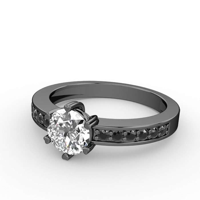 Pırlanta ve siyah zirkon 925 ayar siyah rodyum kaplama gümüş yüzük (0.92 karat)