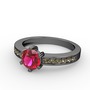Rodolit garnet ve dumanlı kuvars 925 ayar siyah rodyum kaplama gümüş yüzük