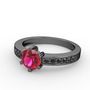 Rodolit garnet ve siyah zirkon 925 ayar siyah rodyum kaplama gümüş yüzük