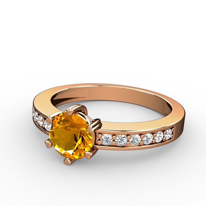 Sitrin ve pırlanta 8 ayar rose altın yüzük (0.18 karat)