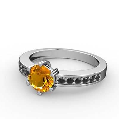 Sitrin ve siyah zirkon 8 ayar beyaz altın yüzük