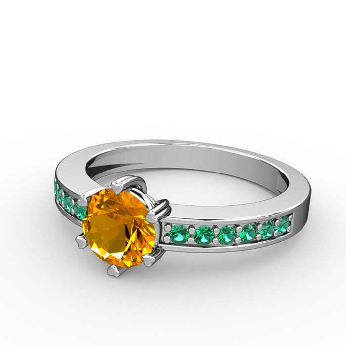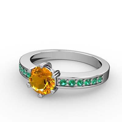 Sitrin ve yeşil kuvars 8 ayar beyaz altın yüzük
