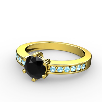 Siyah zirkon ve akuamarin 18 ayar altın yüzük