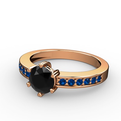 Siyah zirkon ve lab safir 18 ayar rose altın yüzük