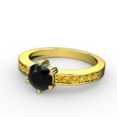 Siyah zirkon ve sitrin 14 ayar altın yüzük
