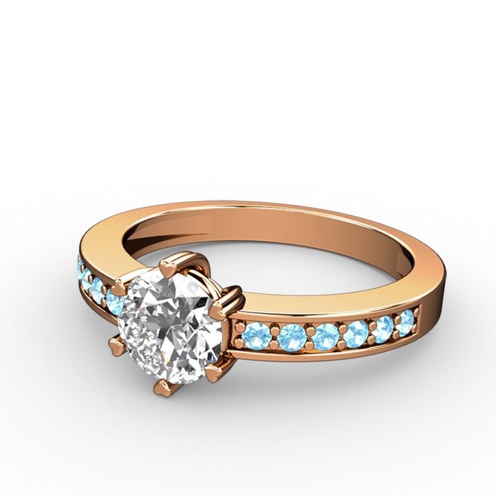 Swarovski ve akuamarin 18 ayar rose altın yüzük