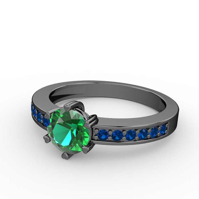 Yeşil kuvars ve lab safir 925 ayar siyah rodyum kaplama gümüş yüzük