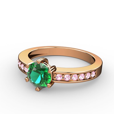 Yeşil kuvars ve pembe kuvars 925 ayar rose altın kaplama gümüş yüzük