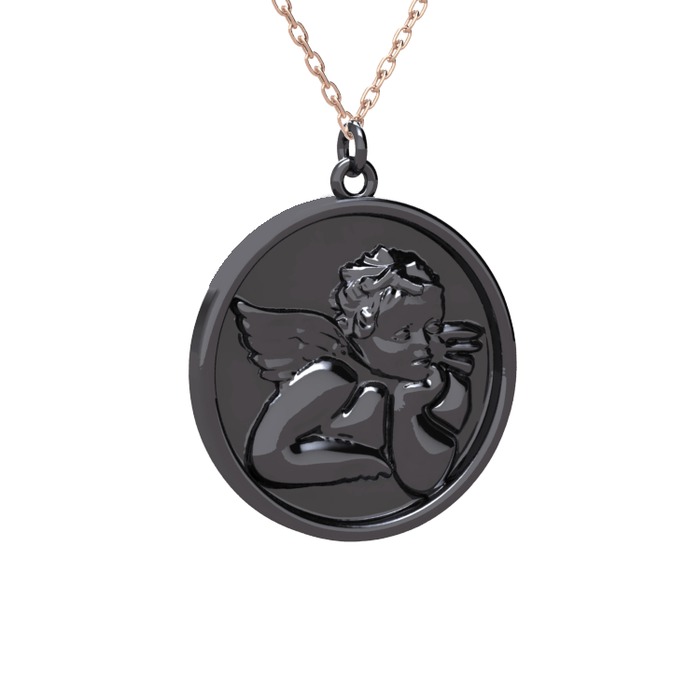 925 ayar siyah rodyum kaplama gümüş kolye (40 cm rose altın rolo zincir)