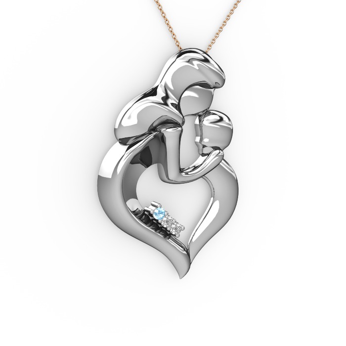 Akuamarin, beyaz zirkon ve pırlanta 925 ayar gümüş kolye (0.015 karat, 40 cm gümüş rolo zincir)