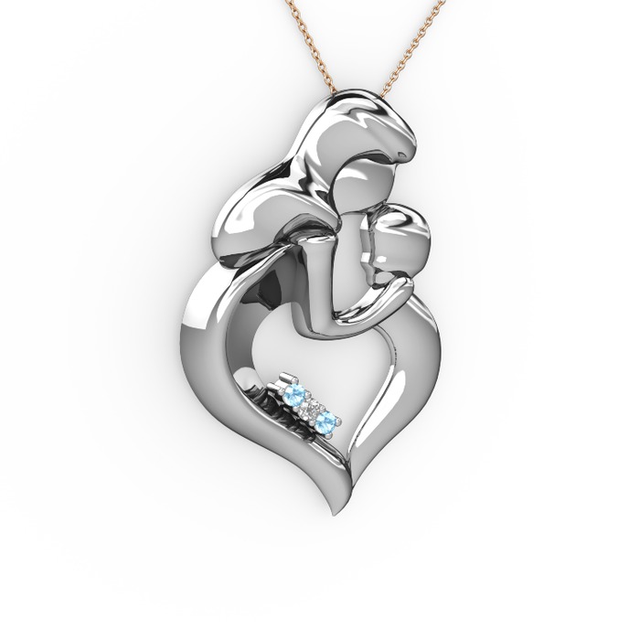 Akuamarin ve pırlanta 14 ayar beyaz altın kolye (0.015 karat, 40 cm rose altın rolo zincir)