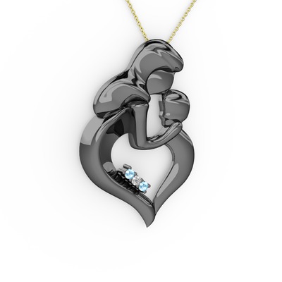 Akuamarin ve pırlanta 925 ayar siyah rodyum kaplama gümüş kolye (0.015 karat, 40 cm altın rolo zincir)