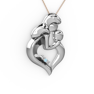 Beyaz zirkon ve akuamarin 925 ayar gümüş kolye (40 cm gümüş rolo zincir)