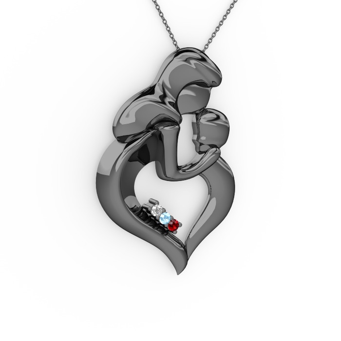Beyaz zirkon, garnet ve akuamarin 925 ayar siyah rodyum kaplama gümüş kolye (40 cm gümüş rolo zincir)