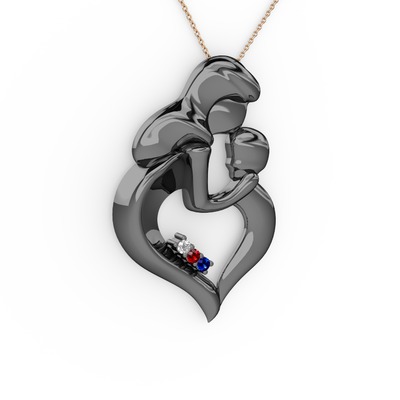 Beyaz zirkon, lab safir ve garnet 925 ayar siyah rodyum kaplama gümüş kolye (40 cm rose altın rolo zincir)