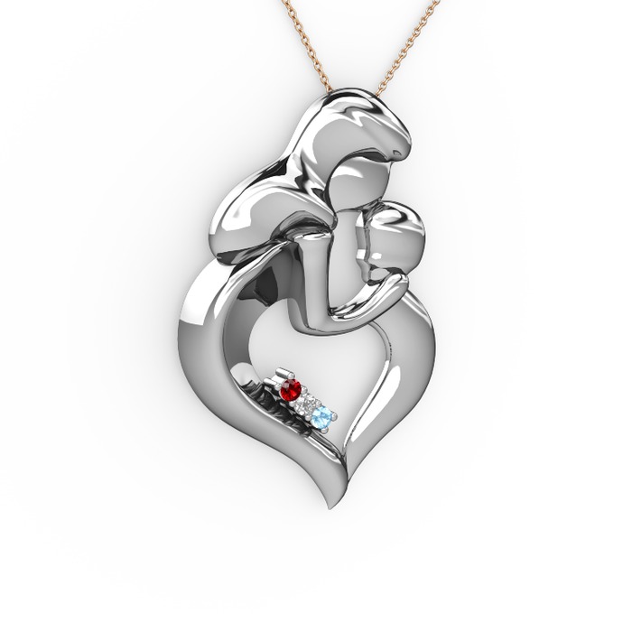 Garnet, akuamarin ve pırlanta 925 ayar gümüş kolye (0.015 karat, 40 cm gümüş rolo zincir)