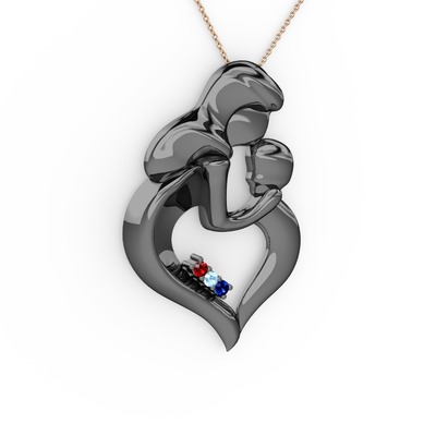 Garnet, lab safir ve akuamarin 925 ayar siyah rodyum kaplama gümüş kolye (40 cm rose altın rolo zincir)