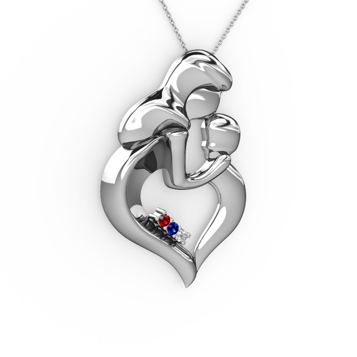 Garnet, pırlanta ve lab safir 8 ayar beyaz altın kolye (0.015 karat, 40 cm gümüş rolo zincir)