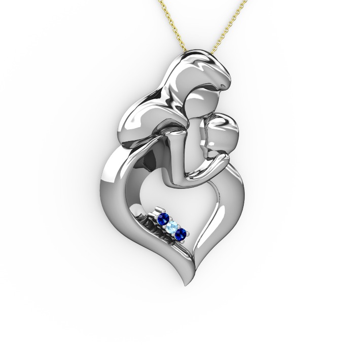 Lab safir ve akuamarin 14 ayar beyaz altın kolye (40 cm altın rolo zincir)