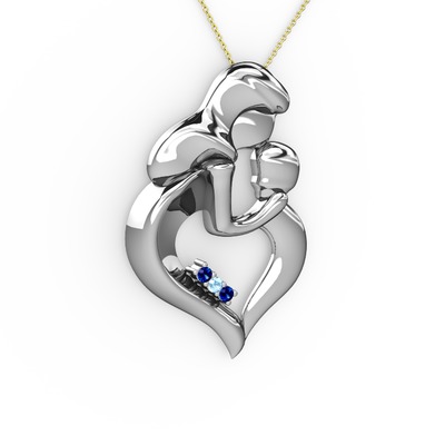 Lab safir ve akuamarin 14 ayar beyaz altın kolye (40 cm altın rolo zincir)