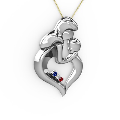 Lab safir, garnet ve beyaz zirkon 18 ayar beyaz altın kolye (40 cm gümüş rolo zincir)